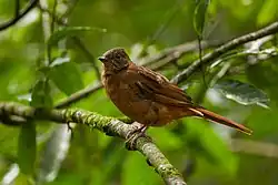 - ↑ BirdLife International (2012). «Stizorhina fraseri». Lista Roja de especies amenazadas de la UICN 2015.4 (en inglés). ISSN 2307-8235. Consultado el 23 de enero de 2015.