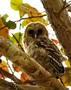 El cárabo norteamericano[2] o cárabo de franjas (Strix varia), también buho café, búho listado, búho barrado, búho barrado norteño y búho serrano ventrirrayado es una especie de ave estrigiforme de la familia Strigidae oriunda de Norteamérica.