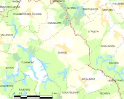 Suarce es una comuna francesa situada en el departamento del Territorio de Belfort, de la región de Borgoña-Franco Condado.