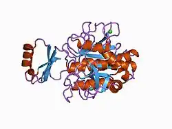 ![]() Estructura del complejo formado entre la subtilisina Carlsberg y eglin c, un inhibidor de la elastasa de la sanguijuela Hirudo medicinalis .[1] | ||