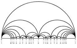 Por ejemplo, 3⁄8 tiene dos expansiones en fracciones continuas [0,2,1,1,1] y [0,2,1,2], y sus vecinos en F8 son 2⁄5, que puede expandirse como [0,2,1,1], y 1⁄3, que puede expandirse como [0,2,1].