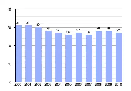 Población de derecho (2000-2010) según los censos de población del INE a 1 de enero de cada año.[7] |