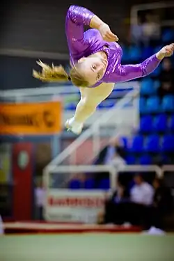 - Salto dividido: Salto hacia delante en carrera en el que la gimnasta pasa por la posición de split mientras está en el aire.