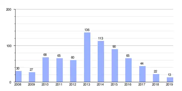 | Gráfica de evolución de Deuda viva del Ayuntamiento de Suflí entre 2008 y 2019 |