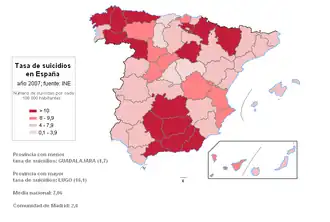 - ↑ «Estadística de suicidio en España. Resultados». Instituto Nacional de Estadística. Consultado el 1 de mayo de 2021.