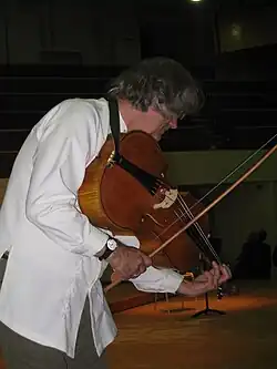 Kuijken con un violonchelo da spalla.