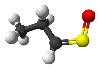 El sulfóxido de tiopropanal (C3H6OS) es un gas que actúa como un agente lacrimógeno (disparador del lacrimeo y escozor al contacto con los ojos). La sustancia se libera desde la cebolla, Allium cepa, al cortarla. La liberación se debe a la ruptura de las células de cebolla y la consecuente liberación de enzimas llamadas alinasas. Estas enzimas descomponen aminoácidos sulfóxidos, generando ácidos sulfénicos. Un ácido sulfénico, el ácido 1-propenesulfénico, se forma cuando las cebollas se cortan, y es rápidamente reorganizado por una segunda enzima, llamada sintasa factor lacrimógeno o LFS, dando sulfóxido de tiopropanal.[2] El gas se difunde por el aire y, en contacto con los ojos, estimula las neuronas sensoriales creando una sensación de escozor y dolor. Las lágrimas son liberadas por las glándulas lacrimales para diluir y limpiar los irritantes.[3] Este compuesto es el que da origen a la expresión popular de que "picar cebolla hace llorar".