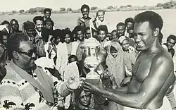 - ↑ a b Ahmed (30 de noviembre de 2015). «صحيفة المجهر السياسي السودانية - "السلطان كيجاب" لــ(المجهر) : "نميري" كان راجل (كلس) وفي عهده السباحة اصبحت اللعبة الاولي في البلد» [The Sudanese political microscope newspaper - "Sultan Kijab" by (the microscope): "Numeiri" was a man (Kels) and during his reign swimming became the first game in the country]. صحيفة المجهر السياسي السودانية (en árabe). Archivado desde el original el 9 de julio de 2023. Consultado el 10 de julio de 2023.