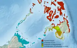 Los Sultanatos de Lanao en Mindanao, Filipinas fueron fundados en el siglo XVI a través de la influencia de Shariff Kabungsuan, quien fue entronizado como primer Sultán de Maguindanao en 1520. Los Maranao de Lanao estaban familiarizados con el sistema de sultanato cuando el Islam fue introducido en la zona por musulmanes misioneros y comerciantes de las regiones Medio Oriente, Indian y Malay que propagaron el Islam a Sulu y Maguindanao.