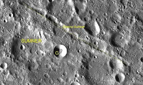 Comenzando unos 30 kilómetros al norte de Sumner y progresando hacia el este-sureste se localiza una larga cadena lineal de cráteres que forma una hendidura irregular en la superficie. Esta formación se denomina Catena Sumner de acuerdo con el nombre del cráter cercano. Discurre al noreste de Harriot A, un cráter satélite de Harriot.