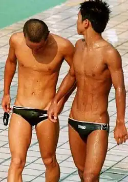 Entre los fabricantes de slips de competición, el más famoso es el Speedo australiano.[23] Las otras marcas más populares son Adidas, Arena, AussieBum, Jaked, Nike, O'Neill, Turbo y TYR.[45]