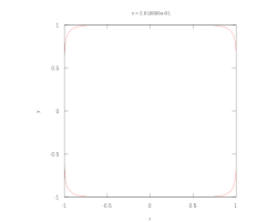 - Para n mayor que 2 se obtienen hiperelipses. En el caso límite de n infinito tenemos un rectángulo.