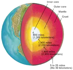 En el centro de la Tierra está el núcleo, una esfera con un radio medio de 3480 kilómetros que se compone principalmente de hierro. El núcleo externo es líquido mientras que el núcleo interno, con un radio de 1220 km, es sólido.[1] Debido a que el núcleo externo tiene una baja viscosidad, podría estar girando a una velocidad diferente del manto y la corteza . Esta posibilidad se propuso por primera vez en 1975 para explicar un fenómeno del campo magnético de la Tierra llamado deriva hacia el oeste: algunas partes del campo giran aproximadamente 0.2 grados por año hacia el oeste en relación con la superficie de la Tierra. En 1981, David Gubbins de la Universidad de Leeds predijo que una rotación diferencial del núcleo interno y externo podría generar un gran campo magnético toroidal cerca del límite compartido, acelerando el núcleo interno a la velocidad de deriva hacia el oeste.[2] Esto estaría en oposición a la rotación de la Tierra, que es hacia el este, por lo que la rotación general sería más lenta.[3]