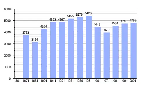 | Gráfica de evolución demográfica de Supino entre 1861 y 2001 |