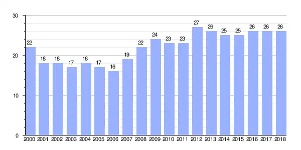 | Gráfica de evolución demográfica de Sura entre 2000 y 2018 |