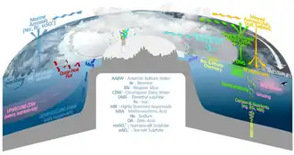 Además, los investigadores comenzaron a investigar la producción de compuestos por microorganismos en el medio marino a principios de la década de 1960. En 1975, se habían desarrollado diferentes áreas de investigación en el estudio de la bioquímica marina. Se trataba de "toxinas marinas, bioproductos marinos y ecología química marina".[6] A raíz de esto en 1994, Teuscher y Lindequist definieron las sustancias biogénicas como: