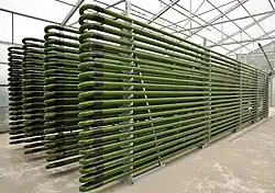 | Tipo de fotobiorreactor | Especies de algas cultivadas | Producto | Referencia |