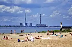 ![]() Playa del del embalse de Vujlejirsk con la central Vujlejirsk al fondo