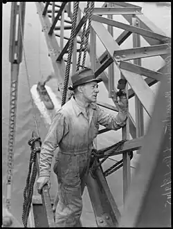 Los estándares de seguridad durante la construcción del puente eran relativamente precarios si se comparan con los estándares más modernos. Dieciséis trabajadores murieron durante las obras,[48] pero sorprendentemente, solo dos se cayeron del puente. Varios más resultaron heridos por prácticas laborales inseguras realizadas mientras calentaban e insertaban los remaches, y se atribuyó la sordera experimentada por muchos de los trabajadores en años posteriores al ruido que debieron soportar durante la ejecución de las obras. Henri Mallard entre 1930 y 1932 produjo cientos de fotografías[49] y material cinematográfico[50] que revelan de cerca la valentía de los trabajadores en las duras condiciones propias de la década de 1930 durante la Gran Depresión.