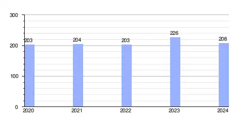 Hasta 2024 la población era de 208 habitantes,[2] con una densidad de población de 29,97 hab/km².[2]