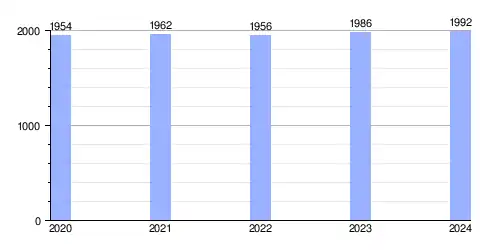 Hasta 2024 la población era de 1992 habitantes,[2] con una densidad de población de 58,29 hab/km².[2]