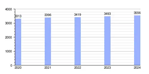 Hasta 2024 la población era de 3556 habitantes,[2] con una densidad de población de 66,70 hab/km².[2]