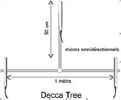 Consiste en la colocación de tres micrófonos omnidireccionales en triángulo. El árbol consiste en una figura de tres puntos formada por los micrófonos omnidireccionales en un triángulo (casi equilátero) apuntando hacia la fuente sonora. Los dos micros exteriores están bastante apartados, de manera que aparece un agujero central si no se coloca un micro en ese lugar. Ese micro central debería ser mezclado para rellenar el hueco. Las distancias exteriores oscilan entre 60 y 120 cm. El tercero, el del centro puede estar ligeramente por debajo y por delante del par externo. Dependiendo de las variables acústicas de la sala donde el conjunto o la orquesta sean grabados, el árbol puede ser alzado o bajado par lograr el mejor resultado. Es una colocación con mucho éxito porque asegura un sonido natural. El árbol se coloca justo detrás o encima del director, lo cual da como resultado un balance muy cercano a la intención musical. Además, los tres micrófonos se aproximan más a las secciones de la orquesta que los sistemas A-B, proporcionando mucha más claridad y definición de la imagen estéreo. Configuración con gran aceptación en el mundo de la grabación orquestal. Originalmente introducido por el sello Decca.[10]