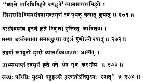 - ↑ a b K. V. Sarma with explanatory notes in English by K. Ramasubrahmanyan, M. D. Srinivas, M. S. Sriram (2008). Ganita-Yukti-Bhasha of Jyeshthadeva. Volume I – Mathematics. New Delhi: Hindustan Book Agency. pp. 201-207. ISBN 978-81-85931-81-4.
