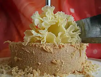 El Tête de Moine AOP ("cabeza de monje" en francés) es un queso semiduro suizo elaborado con leche cruda para rallar, extremadamente oloroso y originario del Jura bernés, la región francófona del cantón de Berna y en el cantón del Jura según la receta tradicional.[1] Se produce con más exactitud en la abadía de Bellelay, situada en la comuna de Saicourt, en el distrito de Moutier. Actualmente, todas las queserías-lecherías del valle producen este delicioso queso. El Tête de Moine AOP se consume en forma de flores hechas con una Girolle o se compra listo para comer.[1]