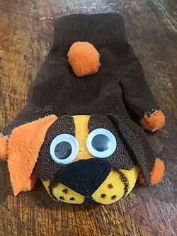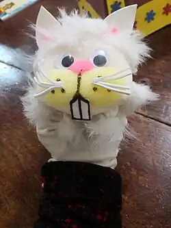 - ↑ Cfr.cuerpo de un títere de guante lo conforma la mano del manipulador que se desliza dentro de la envoltura. Los dedos se colocan de diversas maneras en el interior para sujetar la cabeza, formar los brazos, las piernas o las patas. Bernardo, Mane. Teatro de Sombras. Actilibro, 1991.