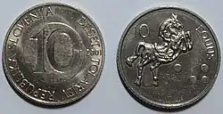 10 Tólar | Cu+Ni | 22,00 | 5,75 | Estriado | Caballo - EQUUS - 10 | 10 - DESET TOLARJEV - REPUBLIKA SLOVENIJA - año de acuñación |