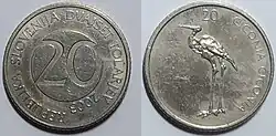 20 Tólar | Cu+Ni | 24,00 | 6,85 | Estriado | Cigüeña - CICONIA CICONIA - 20 | 20 - DVAJSET TOLARJEV - REPUBLIKA SLOVENIJA - año de acuñación |