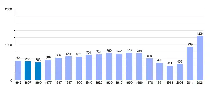 A mediados del siglo XIX, el lugar contaba con una población censada de 551 habitantes.[5] La localidad aparece descrita en el decimoquinto volumen del Diccionario geográfico-estadístico-histórico de España y sus posesiones de Ultramar de Pascual Madoz de la siguiente manera:
