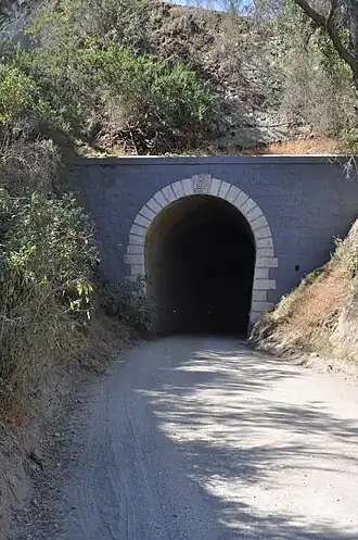 El túnel consiste de una simple obra de cantería, aprovechando la geografía montañosa, su exterior consiste fábricas de ladrillo en ambos extremos.[6] En 2019, la vía que le atraviesa fue pavimentada.[7]