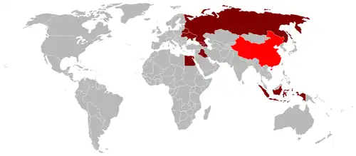 - Fuerza Aérea del Ejército Popular de Liberación : varios Tu-16 fueron adquiridos en 1959; se utiliza la versión china construida bajo licencia Xian H-6[2]