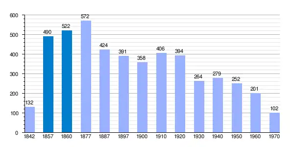 | Gráfica de evolución demográfica de Tahús[3] entre 1842 y 1970 |