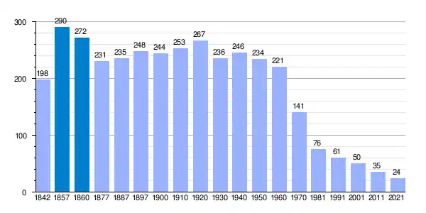 | Gráfica de evolución demográfica de Tabanera de Valdavia[3] entre 1842 y 2021 |
