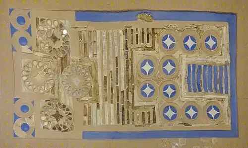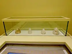 Junto al tablero se encontraron cuatro piezas de marfil en forma de cono, que probablemente formaran parte del juego. [2]