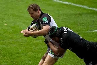 - Sam Warburton a Vincent Clerc en semifinales de la Copa Mundial de Rugby de 2011.