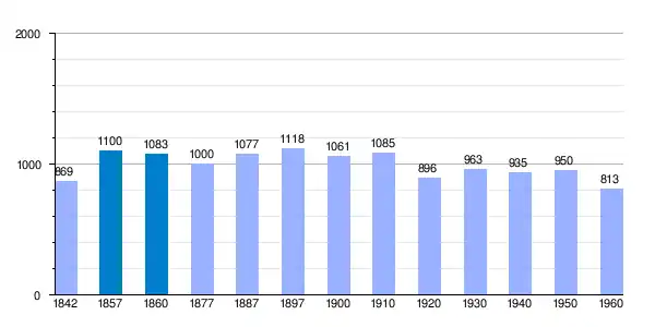 | Gráfica de evolución demográfica de Tagarabuena[11] entre 1842 y 1960 |