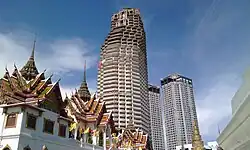 mondop, Wat Ratchanatdaram.mondop (en tailandés, มณฑป, del sánscrito mandapa) - habitualmente un edificio cuadrado abierto por los dados, recubiertos por cuatro bóvedas y de un techo piramidal, utilizado para albergar los textos o los objetos religiosos de culto.