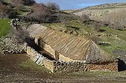 La taina suele disponer de un tejado techado con cubierta vegetal, sin embargo a diferencia del chozón sabinero este aprisco utiliza una cubierta de naturaleza herbácea, generalmente elaborada con bálagos de centeno o trigo ya que la paja de cebada no es adecuada.