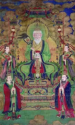 En la tradición religiosa taoísta se identifica a Taishang Laojun con el filósofo Laozi, el cual era considerado una personificación del Tao universal ya al comienzo de la dinastía Han Tardía.[3] Según el Daozang, Taishang Laojun se habría manifestado a través de muchas encarnaciones diferentes, siendo Laozi la principal de ellas. Según distintas tradiciones, fue él quien envió la revelación al fundador del movimiento del Tao de los cinco dǒu de arroz, Zhang Daoling, en el año 142.[4]