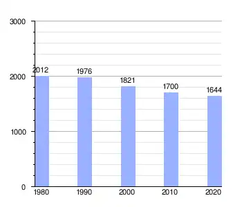 | Gráfica de evolución de Taivassalo entre 1980 y 2020 |