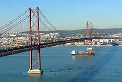 Puente 25 de Abril, construido sobre el estuario del Tajo, en Lisboa