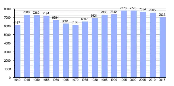 | Gráfica de evolución demográfica de Takayama entre 1940 y 2015 |