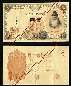 La figura de Takenouchi no Sukune apareció en cinco billetes de yen japonés: