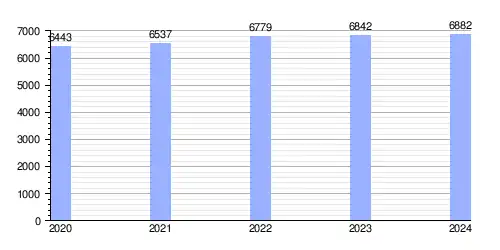 Hasta 2024 la población era de 6882 habitantes,[2] con una densidad de población de 330,07 hab/km².[2]