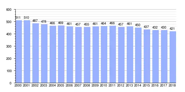 | Gráfica de evolución demográfica de Tal entre 2000 y 2018 |