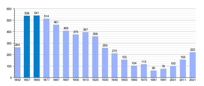 | Gráfica de evolución demográfica de Talamanca[4] entre 1842 y 2021 |